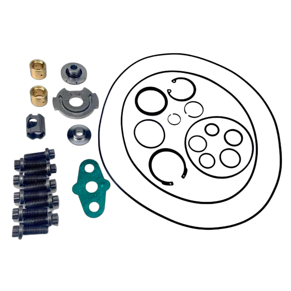 This is a more inclusive rebuild kit that includes all o-rings, seals, bearings, and bolts needed for the internal rebuild of a turbo and the bearing housing.